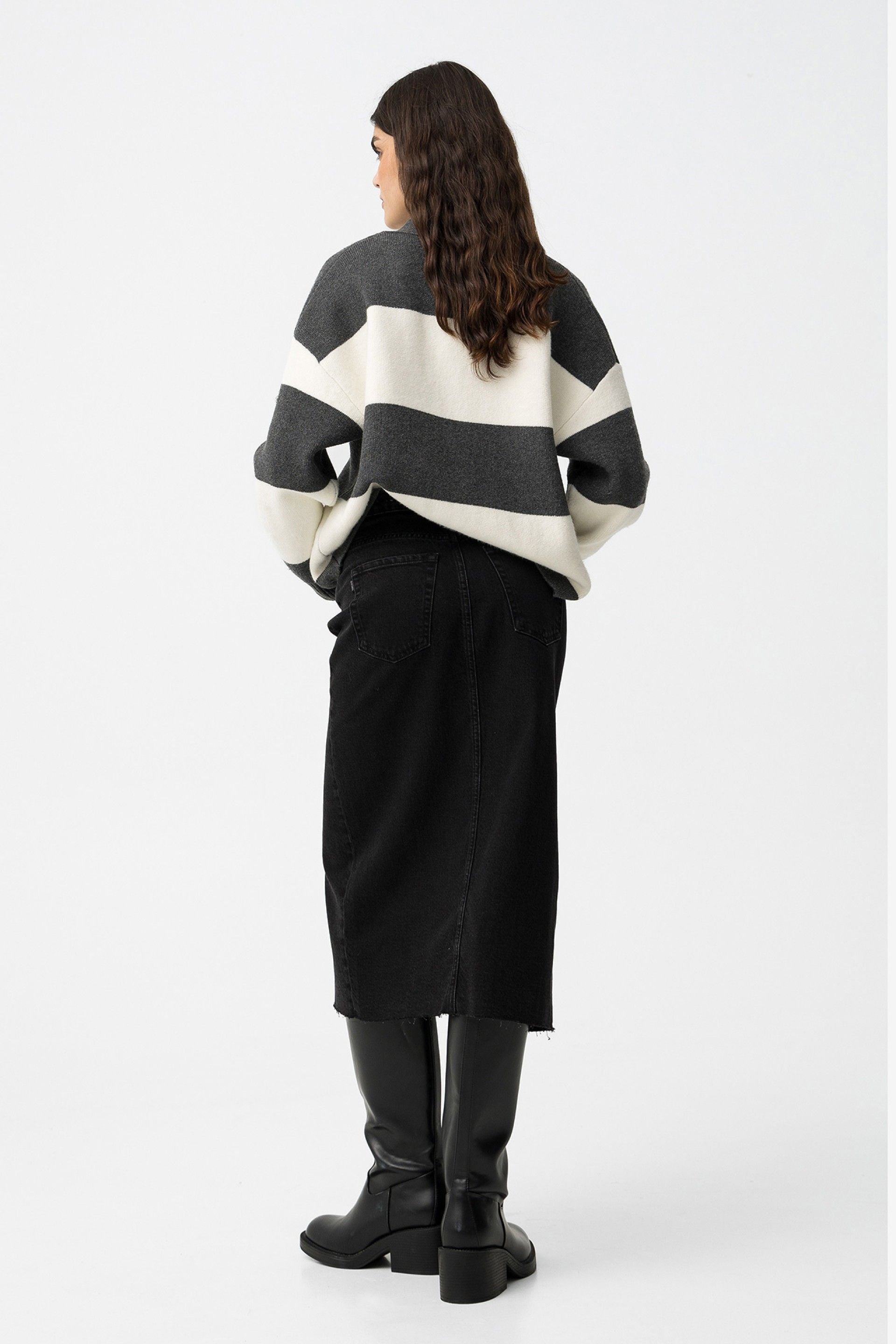 - Falda midi vaquera.