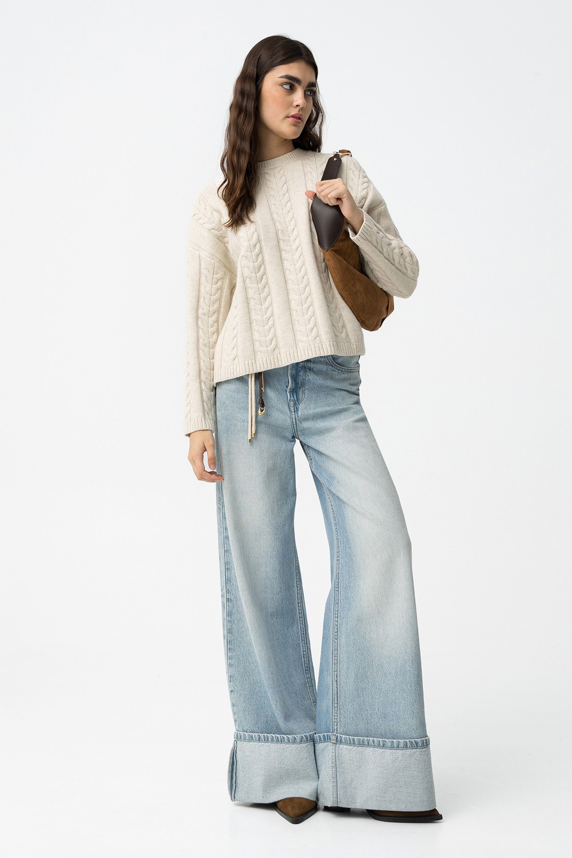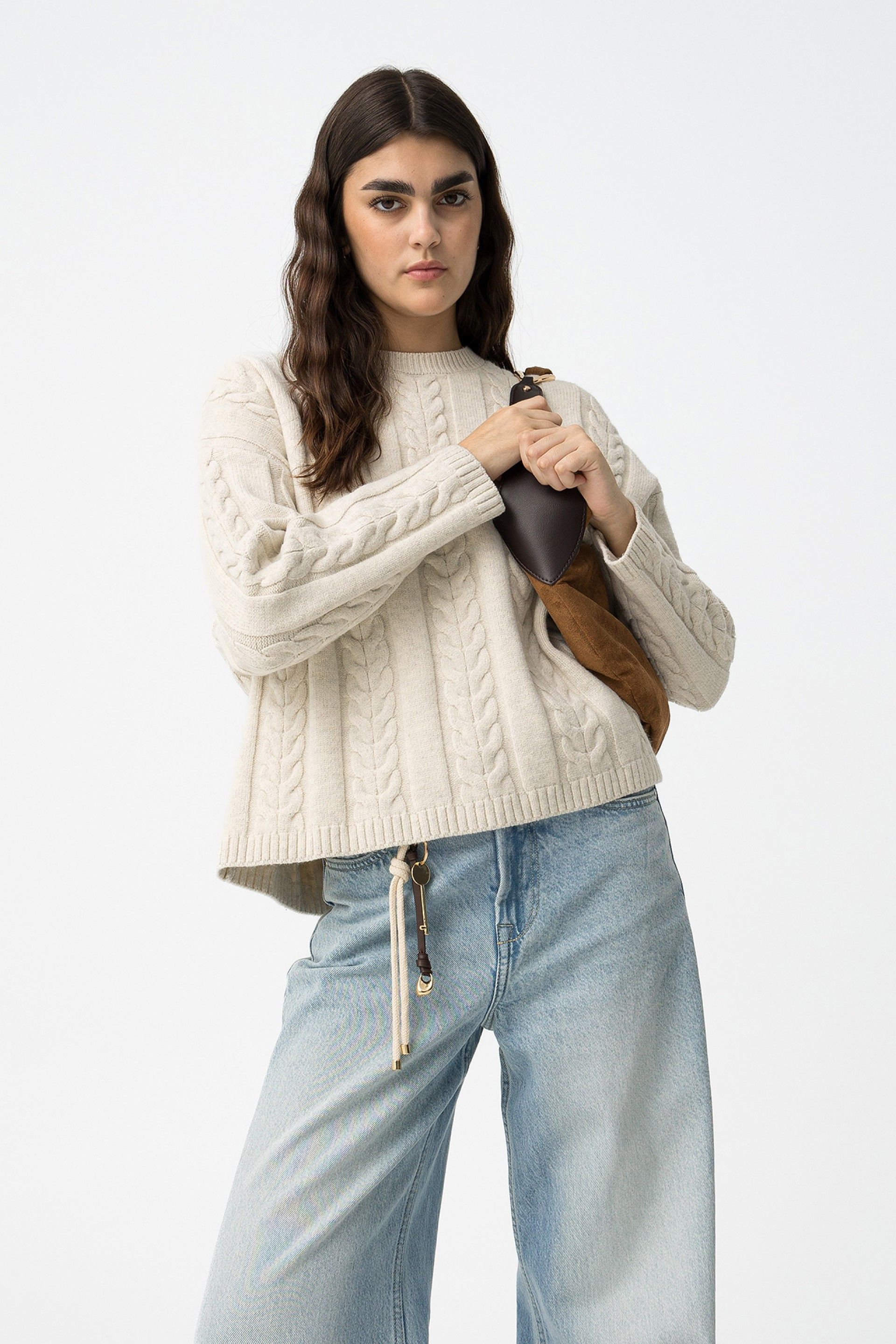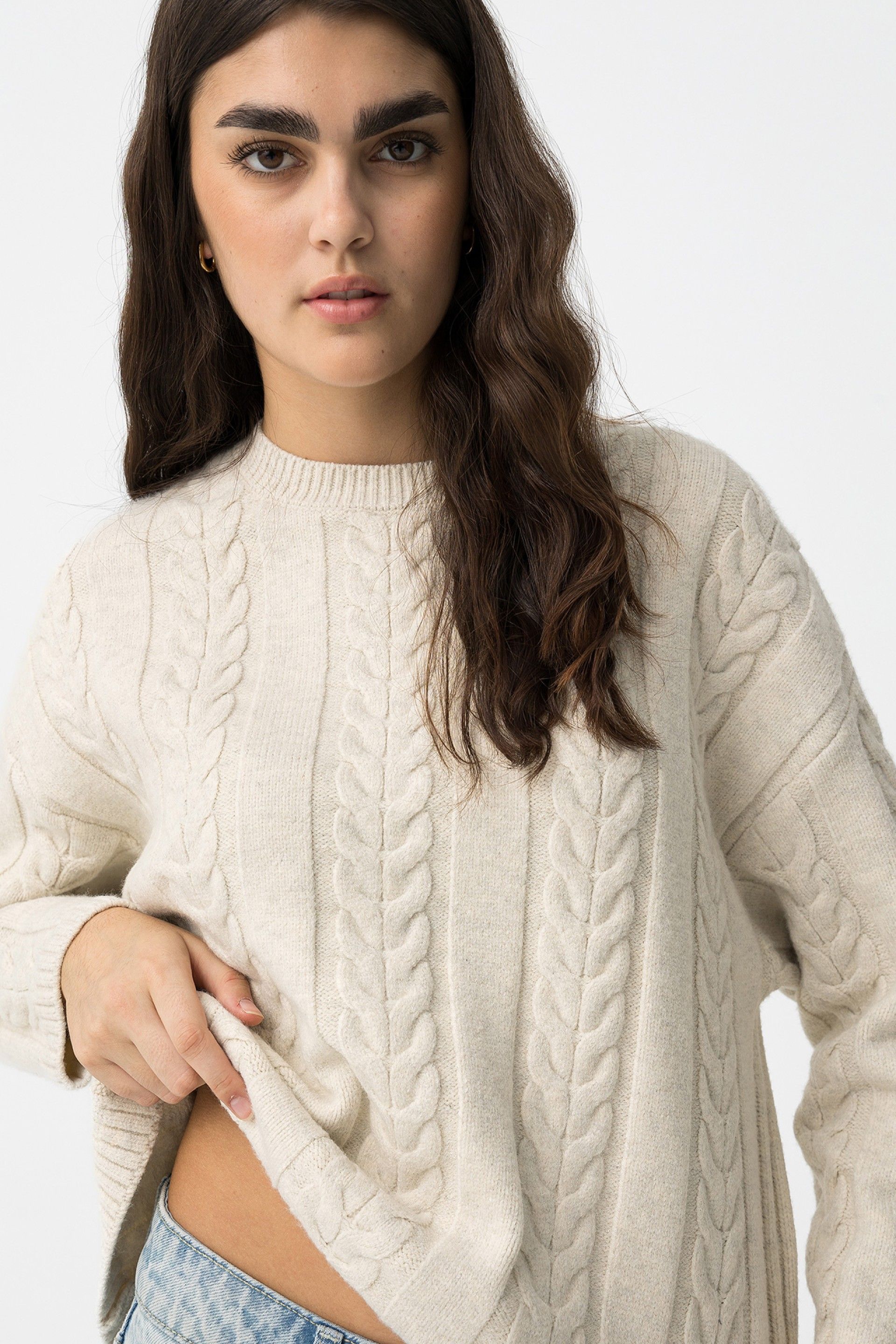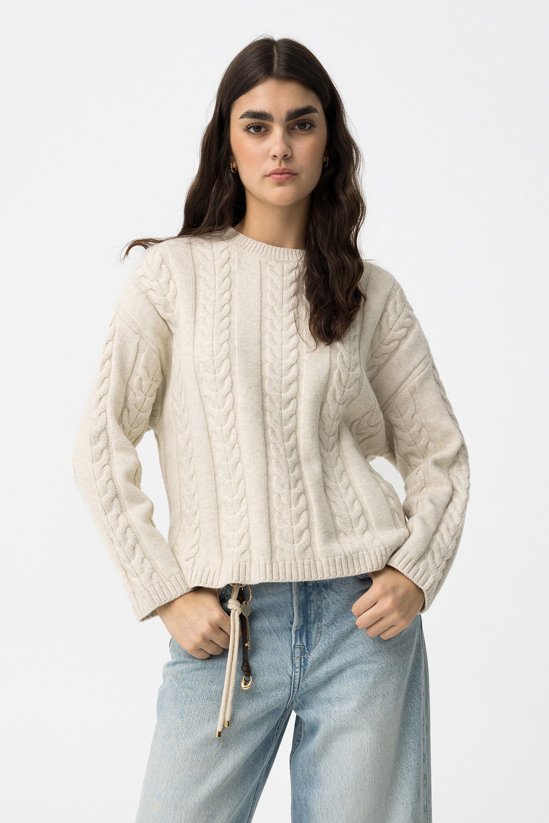- Patrón trenzado delantero y mangas.